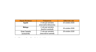 Dans le cadre du développement de son réseau au départ de Bordeaux, easyJet élargit son offre avec trois nouvelles lignes directes pour la saison hiver 2026, à partir du 25 octobre prochain : Agadir, Malaga et Gran Canaria