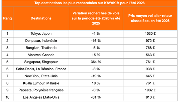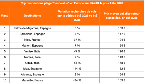 “Ce premier aperçu des données pour l’été 2026 montre que les voyageurs français préparent leurs vacances de plus en plus tôt”, commente Eva Fouquet, VP France de KAYAK, “Avec nos outils comme les Alertes Prix, il est plus facile que jamais de trouver le bon compromis entre prix et expérience, qu’il s’agisse d’une escapade en Méditerranée ou d’un voyage inoubliable en Asie.”