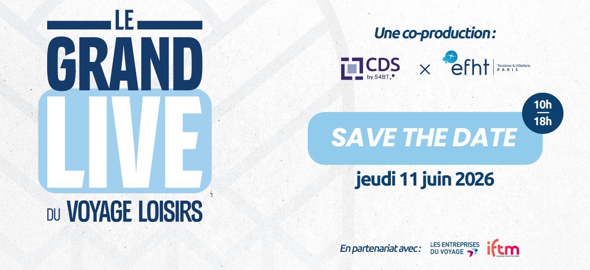 Forts du succès du Grand Live du Voyage d’Affaires, EFHT et CDS annoncent le lancement du Grand Live du Voyage Loisirs qui se tiendra le 11 juin 2026 de 10h00 à 18h00 en partenariat avec l'IFTM et les EDV