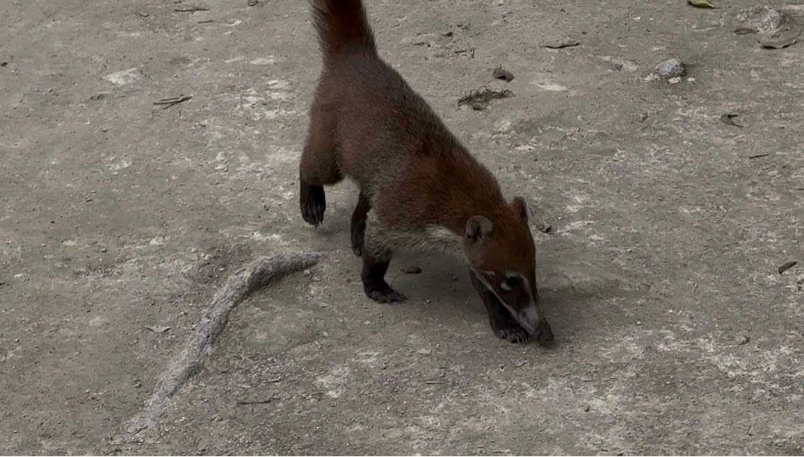Au sol, les coatis, curieux et sociables, se déplacent en groupe à la recherche de nourriture. Malgré leur apparence attachante, ils restent des animaux sauvages parfaitement adaptés à cet environnement.