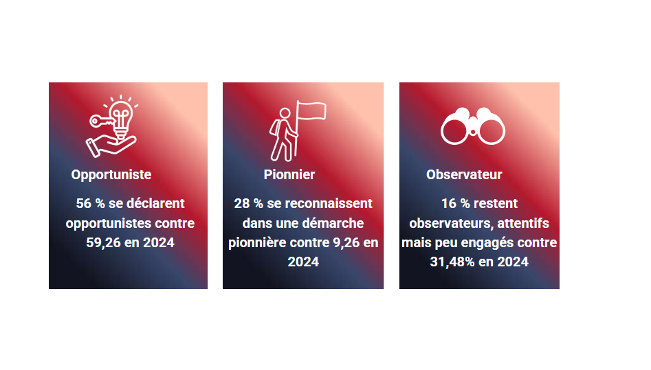 28% de pionniers (contre 9% en 2024, soit +19 points) : des profils engagés dans une démarche structurée ;
