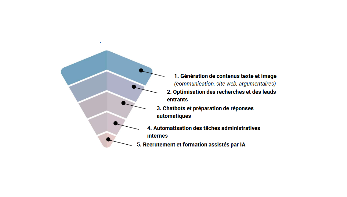 Lorsqu’ils sont invités à classer les usages de l’IA qu’ils jugent les plus intéressants, les répondants font apparaître une hiérarchie claire, dominée par des applications directement opérationnelles :