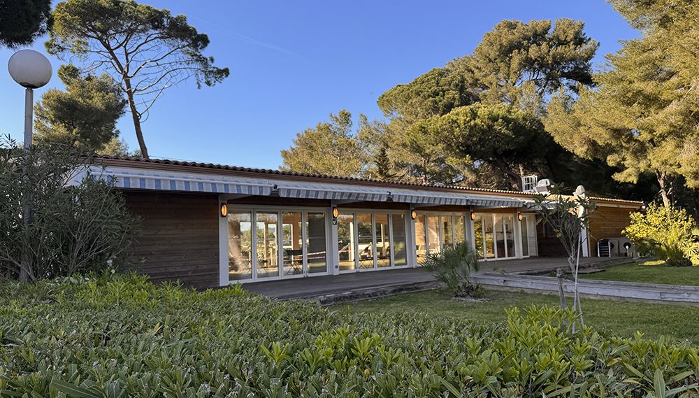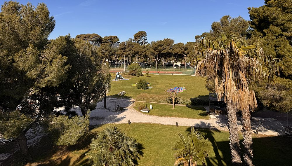 Le Club Plein Sud occupe un site d'exception : 8 hectares de parc arboré, directement en bord de mer, face aux trois îles. L'établissement, construit en 1970 et régulièrement rénové depuis, affiche une allure de grande bâtisse provençale que l'on découvre au détour d'une allée ombragée. Mais c'est en explorant le parc que l'on comprend vraiment l'étendue du lieu.