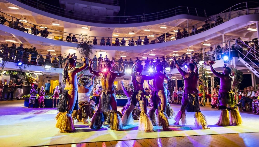 Dès l’embarquement, une ambiance chaleureuse enveloppe les voyageurs grâce à l’accueil de toute l’équipe polynésienne. À bord, l’univers marquisien se déploie à travers des cours de danse tahitienne, un salon de tatouage traditionnel ou encore une gastronomie inspirée de produits locaux. Cette expérience crée un fil rouge entre découvertes à terre et immersion culturelle en mer.