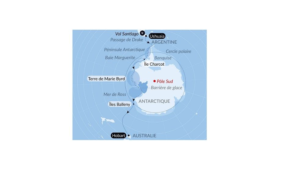 - Itinéraire 2 : « Entre deux continents, terres inexplorées orientales d'Antarctique »
