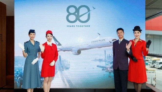 Cathay Pacific a officiellement lancé les célébrations de son anniversaire « 80 Years Together » lors d'un événement spécial, organisé par Ronald Lam, PDG du groupe Cathay, Lavinia Lau, directrice de la clientèle et des opérations commerciales, Alex McGowan, Directeur des opérations et de la prestation de services, et Rebecca Sharpe, directrice financière.
