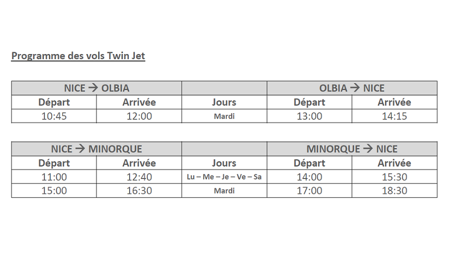 « Le développement de ces deux nouvelles lignes au départ de Nice s’inscrit dans notre volonté de proposer une offre estivale attractive et diversifiée. Olbia et Minorque sont deux destinations complémentaires, qui répondent parfaitement aux attentes des voyageurs en quête de soleil, d’authenticité et de dépaysement » a déclaré Eric Moret, Directeur général de Twin Jet.
